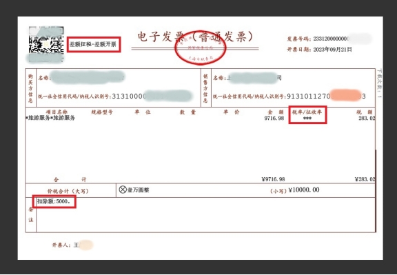 (1)票面左上角(二維碼旁)顯示“差額征稅-差額開票”或“差額征稅-全額開票”字樣;