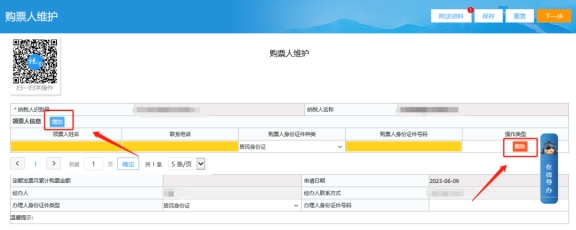 三、領(lǐng)購(gòu)人維護(hù)頁(yè)面,進(jìn)入操作界面后,若要新增人員直接在此處點(diǎn)擊增加;若要?jiǎng)h除,可以在相關(guān)人員信息后方點(diǎn)擊【刪除】。