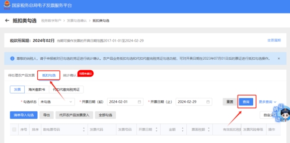 二、稅務數(shù)字賬戶—發(fā)票勾選確認。