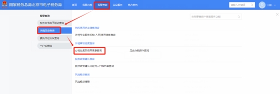 登錄新電子稅局后,點擊【我要查詢】-【涉稅信息查詢】-【涉稅事項進(jìn)度查詢】-【辦稅進(jìn)度及結(jié)果信息查詢】,即可查詢事項辦理進(jìn)度及結(jié)果。