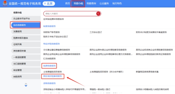一、我要辦稅—綜合信息報告—稅源信息報告—跨區(qū)域涉稅事項報告。