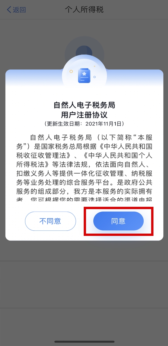 01、攜帶本人有效證件前往辦稅服務(wù)廳獲取大廳注冊碼。然后,打開個人所得稅APP,點(diǎn)擊【我的】-【注冊/登錄】,注冊方式選擇【大廳注冊碼注冊】,點(diǎn)擊【同意】自然人電子稅務(wù)局用戶注冊協(xié)議。