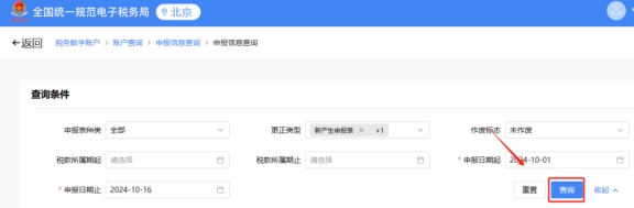 二、申報(bào)信息查詢進(jìn)入功能頁面,輸入查詢條件點(diǎn)擊【查詢】。