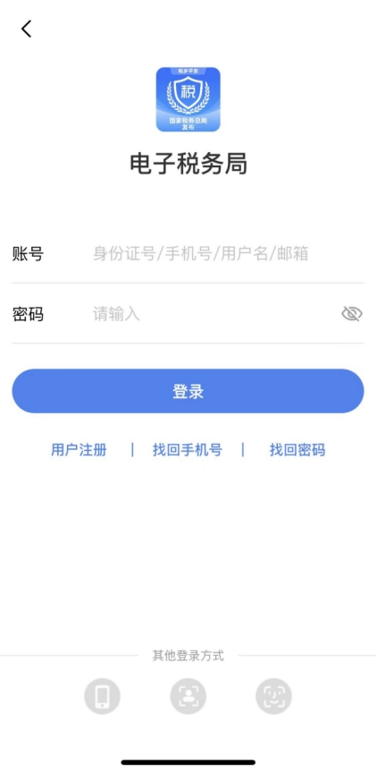 對(duì)于已有電子稅務(wù)局或稅務(wù)APP賬號(hào)的用戶,直接進(jìn)行用戶登錄。登錄方式可選擇賬密登錄、短信登錄、掃臉登錄、指紋/面容登錄。