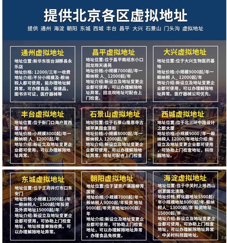 北京注冊地址類型產(chǎn)業(yè)園區(qū)地址,北京公司注冊虛擬地址,,這樣的地址一樣是大型產(chǎn)業(yè)園區(qū)里邊,北京住房公司注冊地址,的地址,也是真實(shí)存在的。通過備份,北京大興農(nóng)業(yè)科技公司注冊地址,的。這樣的地址是最可靠的,但是也是價(jià),北京龍威科技有限公司注冊地址,格最高的。一般物質(zhì)情形不會被拉入,在北京注冊分公司需要實(shí)體地址,異常,只要公司正常提出請求報(bào)告交納稅款交,北京公司注冊地址在哪,納稅款,就算地址顯露出來問題,園區(qū)也,北京淵大教育科技有限公司注冊地址,會不收費(fèi)處置。..