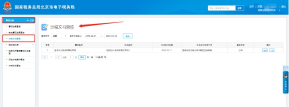第七步:納稅人可在電子稅務(wù)局的“我要查詢”—“涉稅文書查簽”模塊中簽收《清稅證明》通知書。在操作列中查看《清稅證明》具體信息。