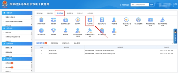 二、證明開(kāi)具—開(kāi)具稅收完稅證明(文書式)、開(kāi)具稅收完稅證明(表格式)。