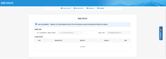 三、簡(jiǎn)易行政處罰菜單進(jìn)入點(diǎn)擊操作下面的受理按鈕查看違法行為記錄。確認(rèn)違法事實(shí)后填寫經(jīng)辦人姓名點(diǎn)擊右上角的確認(rèn)。