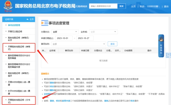 二、證明開(kāi)具—開(kāi)具稅收完稅證明(文書式)、開(kāi)具稅收完稅證明(表格式)。